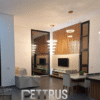 Sala de estar espaçosa e bem iluminada, com rack planejado com LED, sofá de 4 lugares, TV e internet.