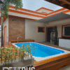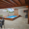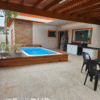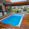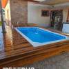 Piscina com elegante deck de madeira cumaru